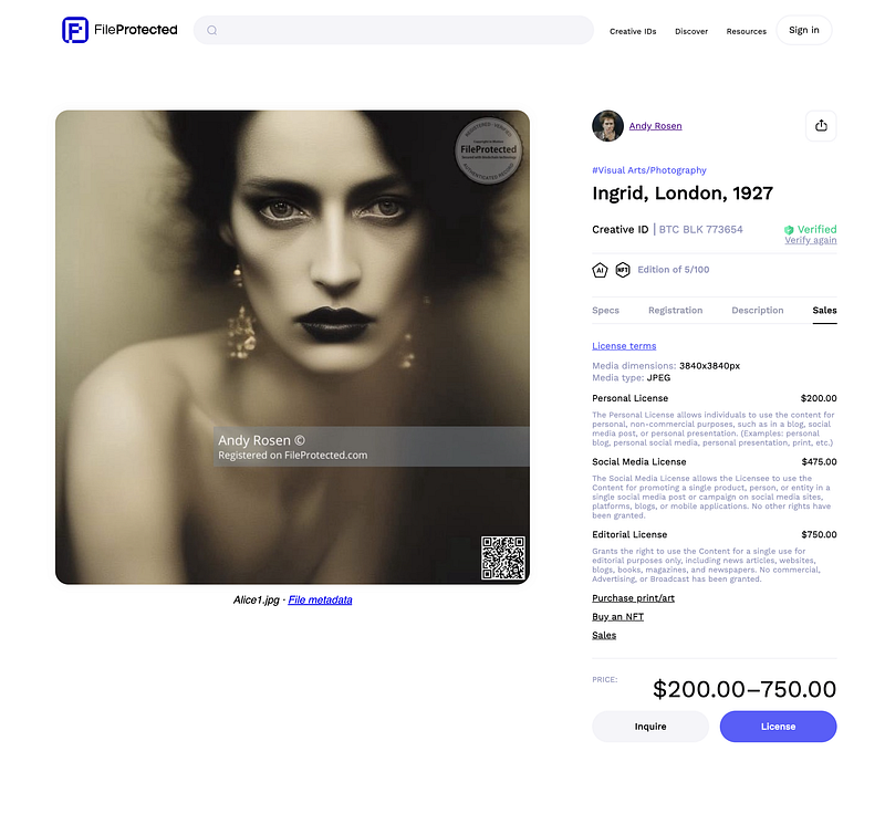 Creative ID for Attribution, Authenticity, and Instant Sales: Your unique Creative ID acts as a digital passport, accompanying your work wherever it travels. It ensures proper attribution, authentication, and transparent representation of digital content, enhancing trust and successful sales.